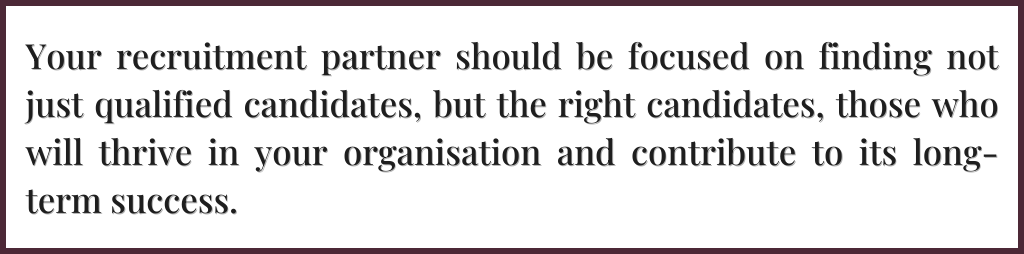 Also consider who will be managing your recruitment, as the experience and insight of the individual consultant can make a significant difference. A knowledgeable recruiter will help you refine job briefs, advise on market conditions, and challenge assumptions where needed. If an agency simply takes orders without adding value, it may not be the right fit for a strategic partnership.